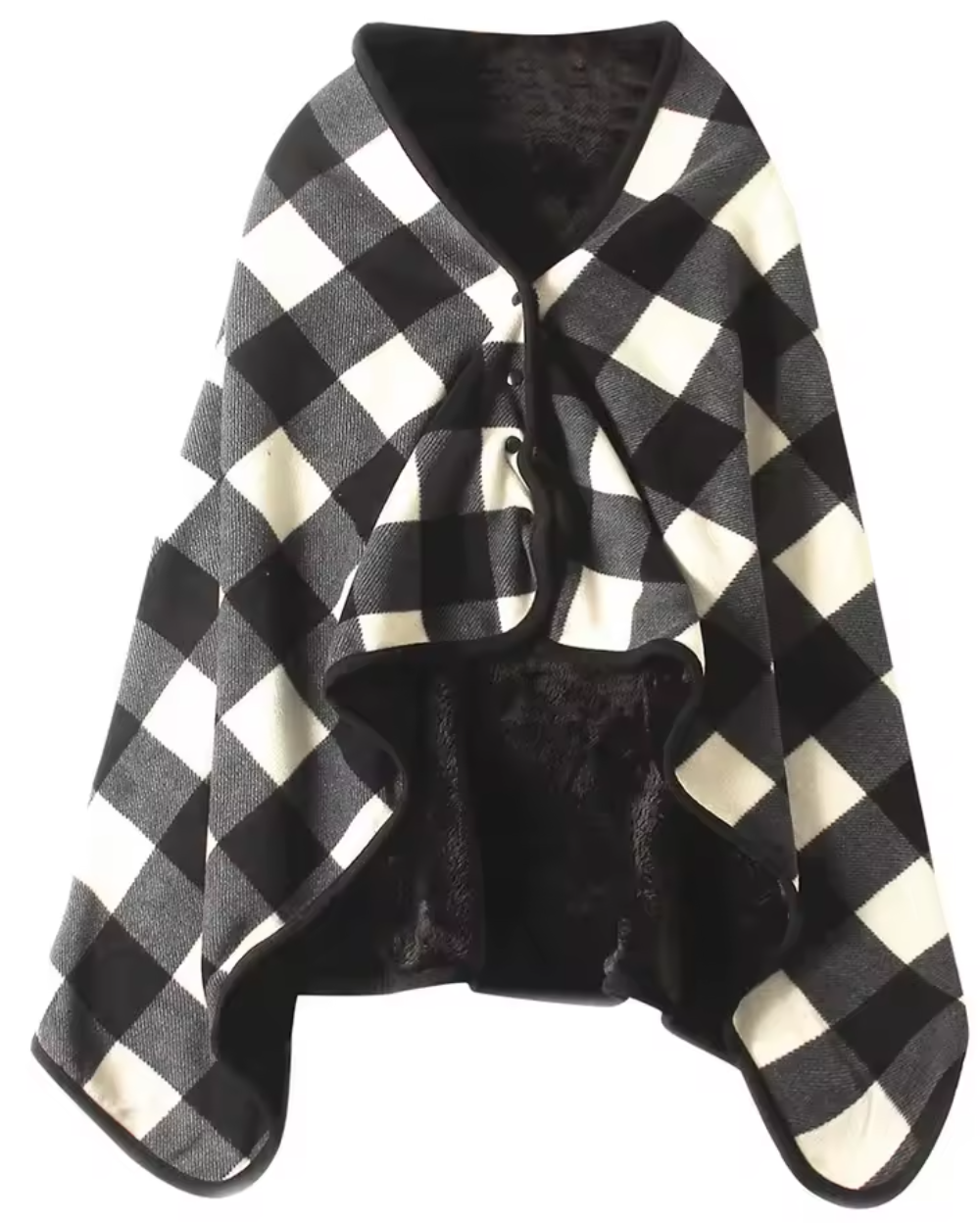 Realizzato con una comoda chiusura con bottoni a clip sul davantI, è perfetto per le passeggiate d’autunno, i pomeriggi sul divano o come coprispalle! Versatile durante i viaggi, questo poncho ti accompagna ovunque con stile e funzionalità